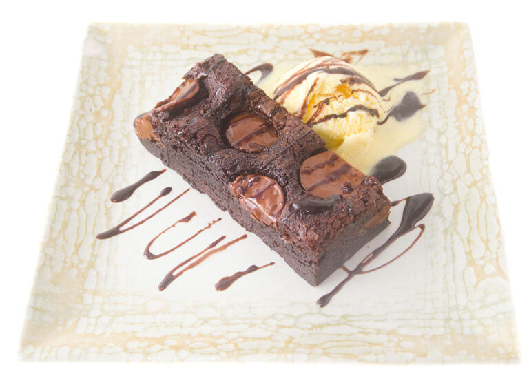 This delightful creation is a perfect harmony of rich, velvety chocolate, baked to perfection, ensuring a slightly crisp exterior that yields to a heart of crunchy nuts.